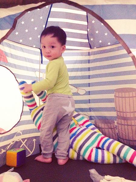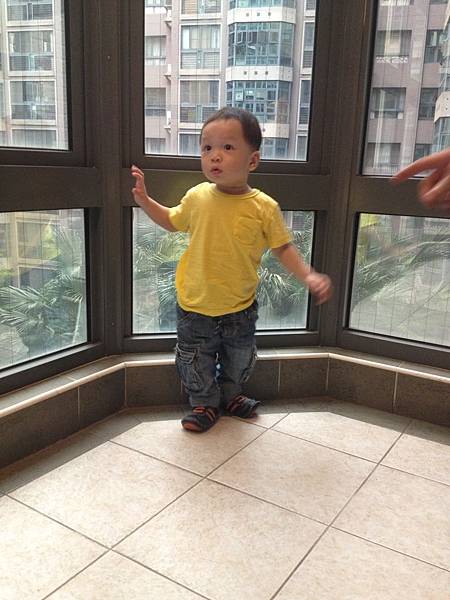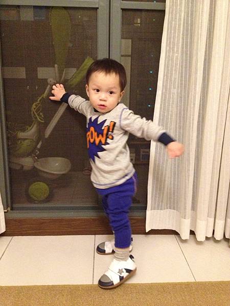 配上已變小的9分緊身褲,也有種雅痞風 (媽媽自我感覺良好)