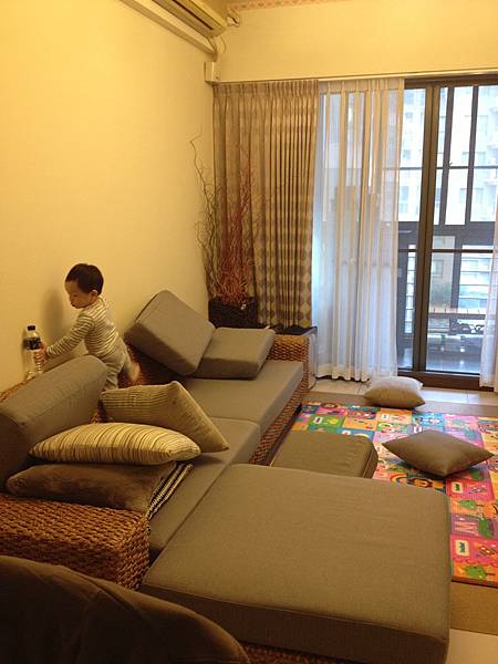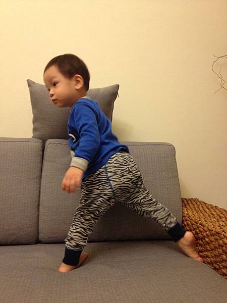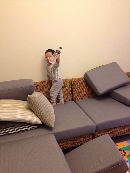 很愛跳沙發,還會喊一、二、一、二 (現在只會喊到二)