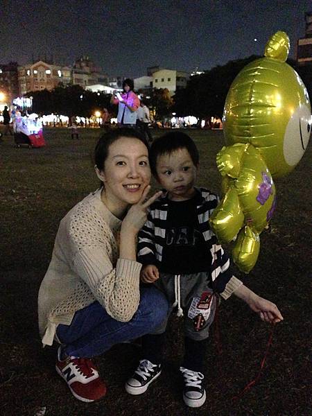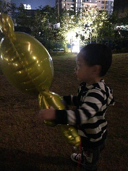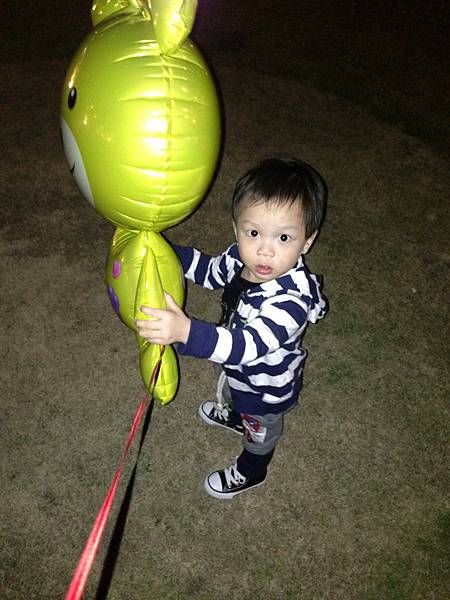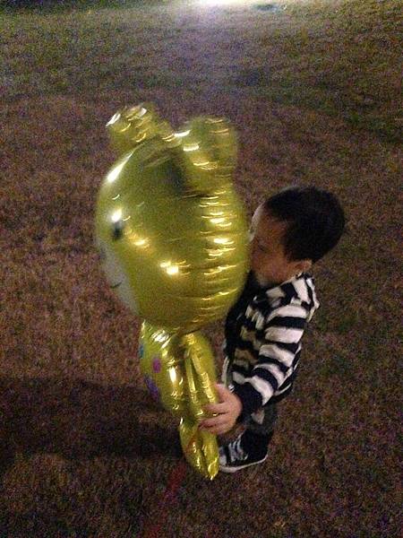 以為鋒哥看到泰迪熊會很興奮,結果一整晚他只愛我們在路邊買的熊熊汽球