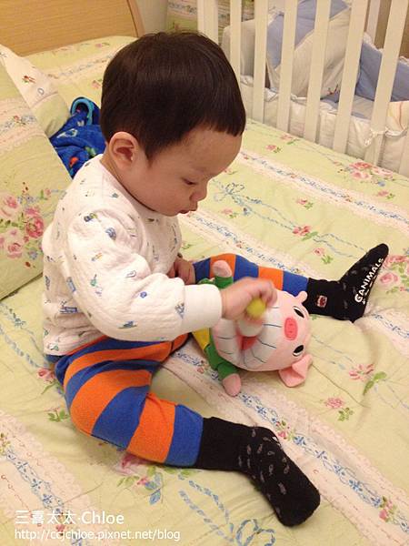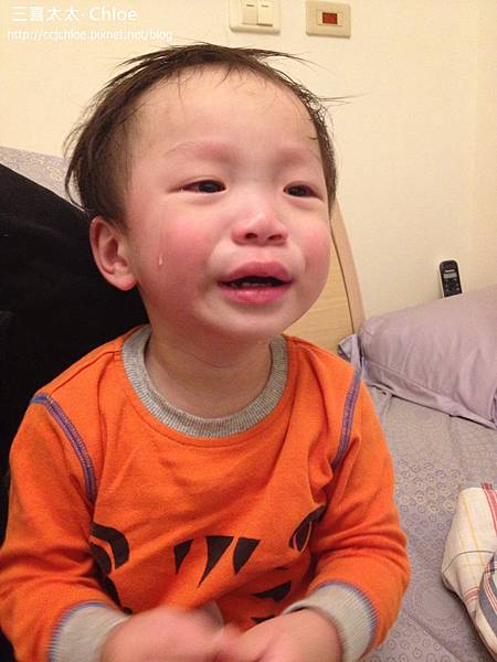 鋒哥慢慢從 “大哭”到 “雖然沒哭但仍然想逃”(但雙手雙腳仍被媽媽的雙腿夾住)