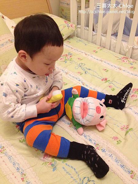 刷完牙還會自己拿著牙刷幫小豬刷牙