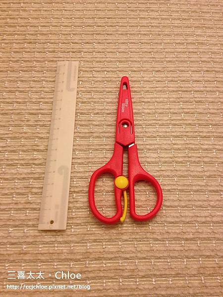 剪刀有附保護套 ,長度比15公分的尺短一點