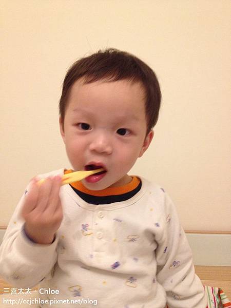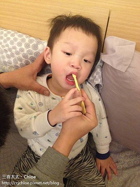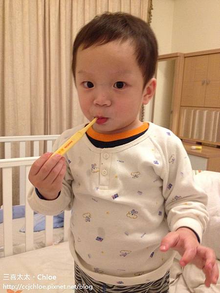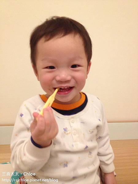 每天晚上固定喝完奶奶後,由我們大人先幫他刷牙