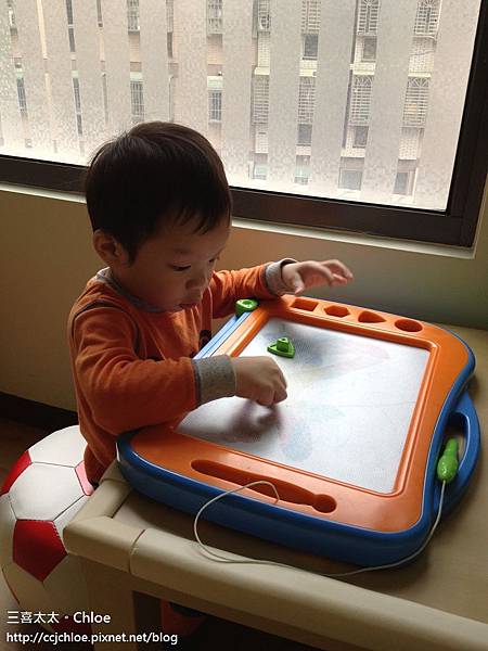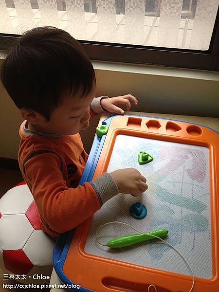 其實之前就有買磁鐵性的畫板讓鋒哥畫畫