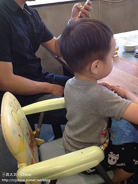 結果才發現這小子根本已經很會坐大人的椅子了,不需要安全背心了嘛XD
