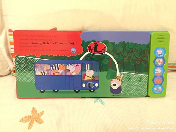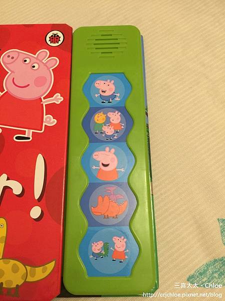 然後發現了粉紅豬小妹也有出音效書,就買了一本回家向鋒哥現寶