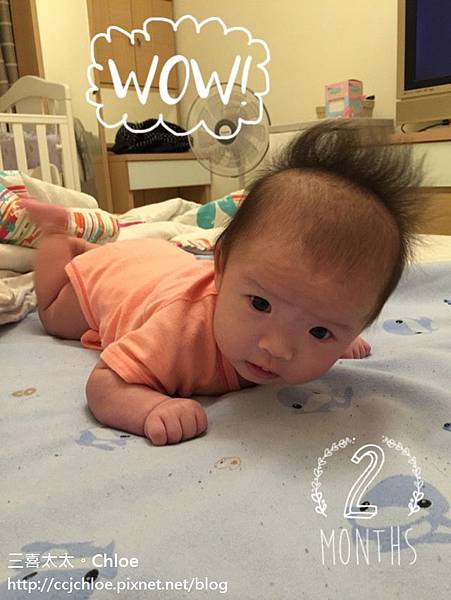 (剛出生的晴) 再不幫嬰兒記錄,嬰兒都快要長大了 晴的發展比較快 感覺樣樣都比鋒哥早 月子中心回家之後,想說來訓練她睡過夜 不成功就算了,大不了睡眠不足 但她居然很配合地訓練了三天吧,就睡過夜了 (也有朋友說是因為女生比較重睡眠,男生比較重吃的關係) (不過我覺得,她是來報恩的~ 噗) 她是硬頸女孩兒,二個月就嘗試自己抬頭