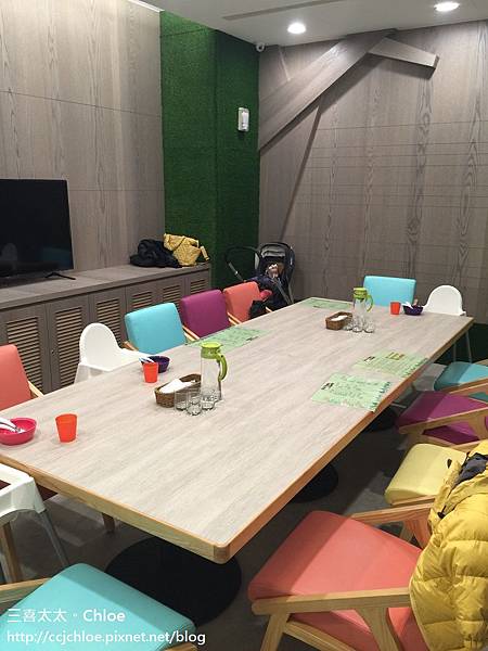 遊戲區和座位不會相隔太遠, 坐外場的話,座位幾乎就在遊戲區旁邊 我們包廂的話,就在遊戲區正對面, 走出去就可以找到小孩了,很方便, 當然,最好還是要有大人顧著啦。 今天是媽媽們的場子, 所以爸爸們都很靠譜地主動去顧小孩 (我們都有個好老公,棒棒!)