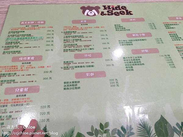 Hide & Seek 嘻遊聚親子餐廳 地址:台中市西屯區國安一路168號G樓 (米平方商場G樓) 電話:04-2462-5266 營業時間:11:00-14:00、14:30-17:30、18:00-21:00