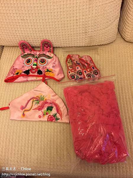 抓周服,還有虎帽、虎鞋, 我租的是澎澎裙,也有其他款式的 (如旗袍式、燈籠短褲),