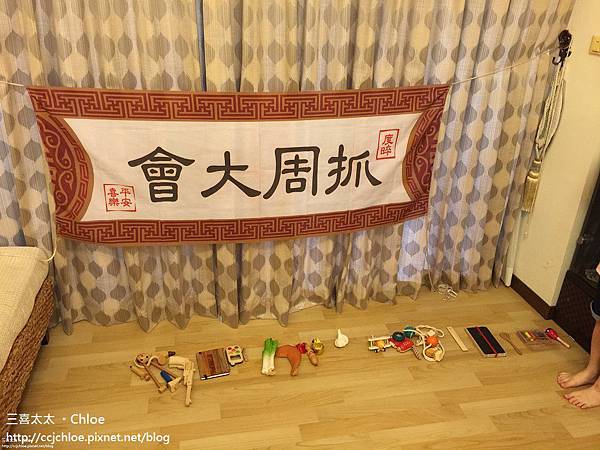 最後最後,便決定在家裡抓周囉 ~ 想當初鋒哥也是在家裡抓周的, 晴也比照辦理,以後長大二個人才不會有比較, (好像有點想太多,呵)