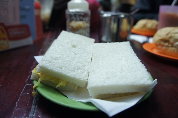 外頭有牛油, 吐司裡頭有甜甜的醬, 據說是用蛋奶加椰醬做成的『咖央醬』,