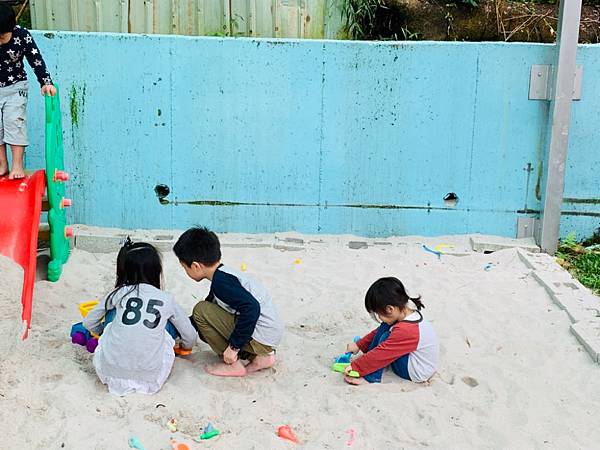 這裡很適合親子露營,釣魚池、沙坑、溜滑梯、超大戲水池之外,營區還有養小羊。大家在山林裡吃飯聊天真的很愜意,沒有喇叭聲、沒有車水馬龍,眼睛放空看大景,腦袋也跟著放空了,看著孩子們在大自然裡野放也覺得很開心。一下山,兒子就問我:媽媽,我們下次什麼時候可以再露營?